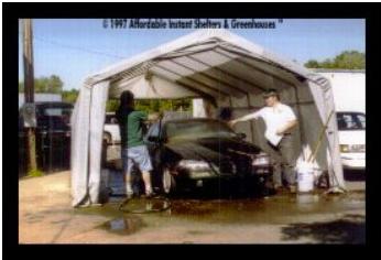 ENTERPRISE RENT A CAR™ believes in our portable garages & temporary small buildings. That's why you see this low cost portable garage kit (house style) being used as a car wash detailing center.